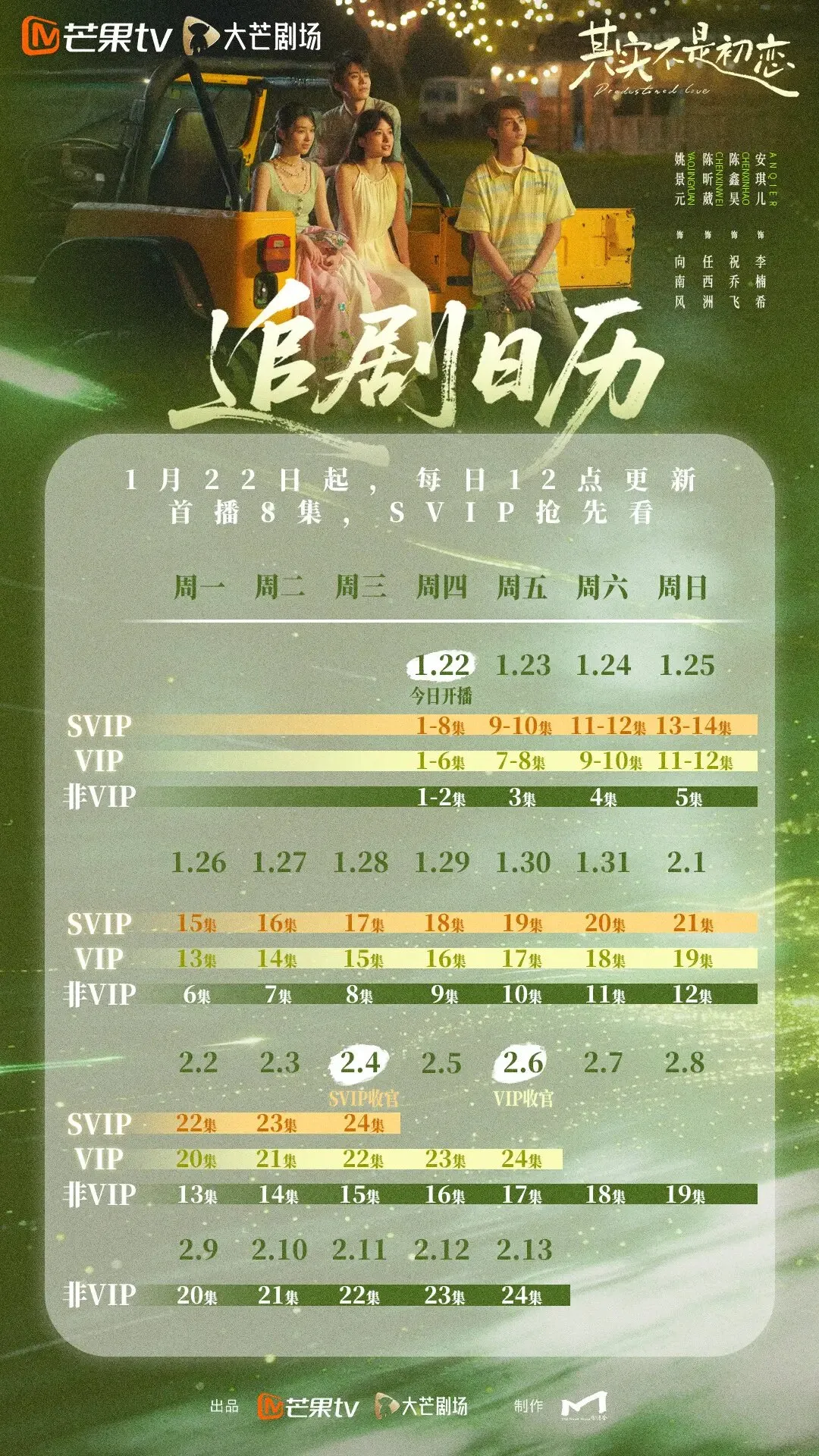 +7 Predestined Love • 2026 • Chinese • Mango TV • Ended + Follow Show Official Site ↗ No summary available. Romance Seasons Season 1 · 24 Episodes 📺 E1 Episode 1 Aired Jan 22, 2026 19 min 📺 E2 Episode 2 Aired Jan 22, 2026 18 min 📺 E3 Episode 3 Aired Jan 22, 2026 19 min 📺 E4 Episode 4 Aired Jan 22, 2026 16 min 📺 E5 Episode 5 Aired Jan 22, 2026 15 min 📺 E6 Episode 6 Aired Jan 22, 2026 15 min 📺 E7 Episode 7 Aired Jan 22, 2026 16 min 📺 E8 Episode 8 Aired Jan 22, 2026 16 min 📺 E9 Episode 9 Aired Jan 23, 2026 17 min 📺 E10 Episode 10 Aired Jan 23, 2026 17 min 📺 E11 Episode 11 Aired Jan 24, 2026 17 min 📺 E12 Episode 12 Aired Jan 24, 2026 17 min 📺 E13 Episode 13 Aired Jan 25, 2026 17 min 📺 E14 Episode 14 Aired Jan 25, 2026 17 min 📺 E15 Episode 15 Aired Jan 26, 2026 17 min 📺 E16 Episode 16 Aired Jan 27, 2026 17 min 📺 E17 Episode 17 Aired Jan 28, 2026 17 min 📺 E18 Episode 18 Aired Jan 28, 2026 17 min 📺 E19 Episode 19 Aired Jan 29, 2026 17 min 📺 E20 Episode 20 Aired Jan 29, 2026 17 min 📺 E21 Episode 21 Aired Jan 30, 2026 17 min 📺 E22 Episode 22 Aired Jan 30, 2026 17 min 📺 E23 Episode 23 Aired Jan 31, 2026 17 min 📺 E24 Episode 24 Aired Feb 1, 2026 17 min